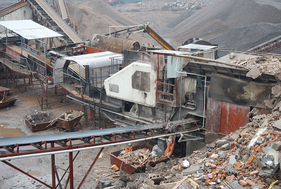 建筑垃圾中的磚塊、土塊、混凝土塊等送入到移動(dòng)鄂破機(jī)中簡(jiǎn)單的粗碎處理,有滾筒篩從中過(guò)濾出木條、鋼筋等不能破碎的材料;之后粗碎過(guò)的建筑垃圾進(jìn)一步送入到移動(dòng)反擊破內(nèi)細(xì)碎處理,并由滾筒篩再次篩分,得到合格的再生骨料可由皮帶輸送機(jī)送入到洗砂機(jī)內(nèi)洗沙后送至成品區(qū)即可。