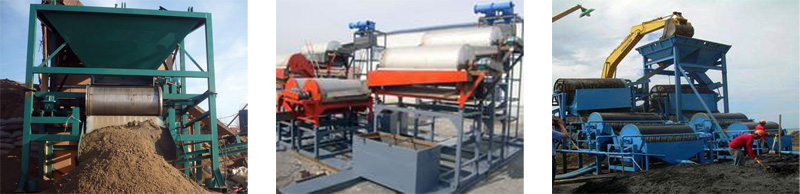 隨著磁鼓的轉(zhuǎn)動,磁性物料將被帶到非磁性區(qū)域較終由于其重力而落下,這樣混合物料將被分選為含鐵的和非含鐵兩部分。