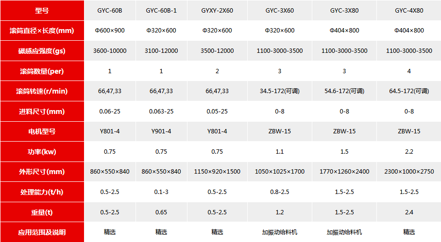 干式磁選機技術(shù)參數(shù)