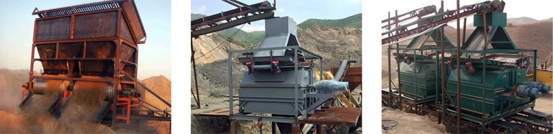 原料經(jīng)過初步篩分后由皮帶機送進給料斗,之后落入磁鼓上方,且只能以松散方式落入磁區(qū)上方。