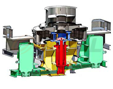 物料經(jīng)給料機(jī)均勻輸送到破碎機(jī)內(nèi),被破碎機(jī)初步破碎以后由圓振動(dòng)篩構(gòu)成閉路系統(tǒng),實(shí)現(xiàn)物料的循環(huán)破碎,符合粒度要求的物料由輸送機(jī)輸出,從而達(dá)到生產(chǎn)目的。